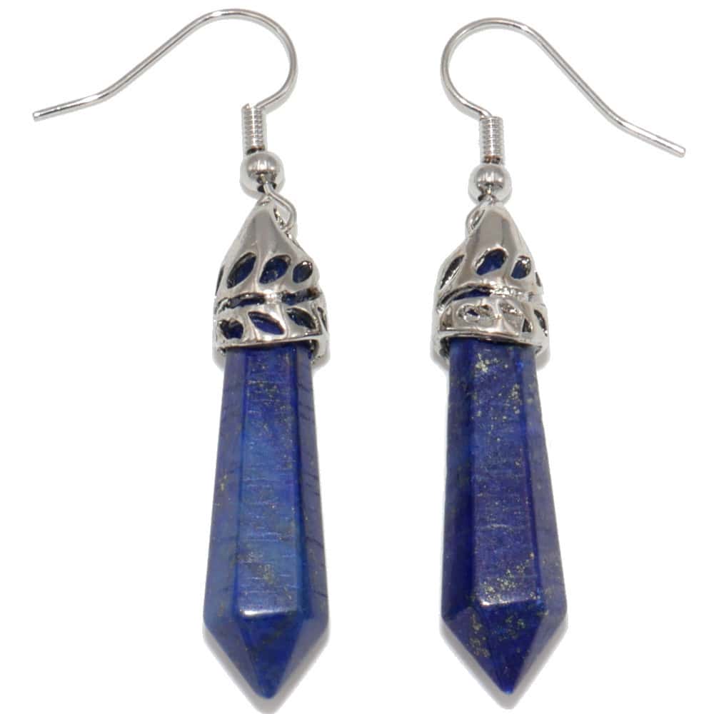 boucles d’oreilles en lapis lazuli pierre taillée en pointe