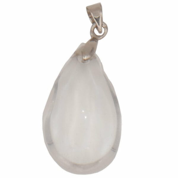 Ce pendentif en cristal de roche en forme de goutte mesure environ 2,5 cm de haut, 1,5 cm de large et 9 mm d’épaisseur.